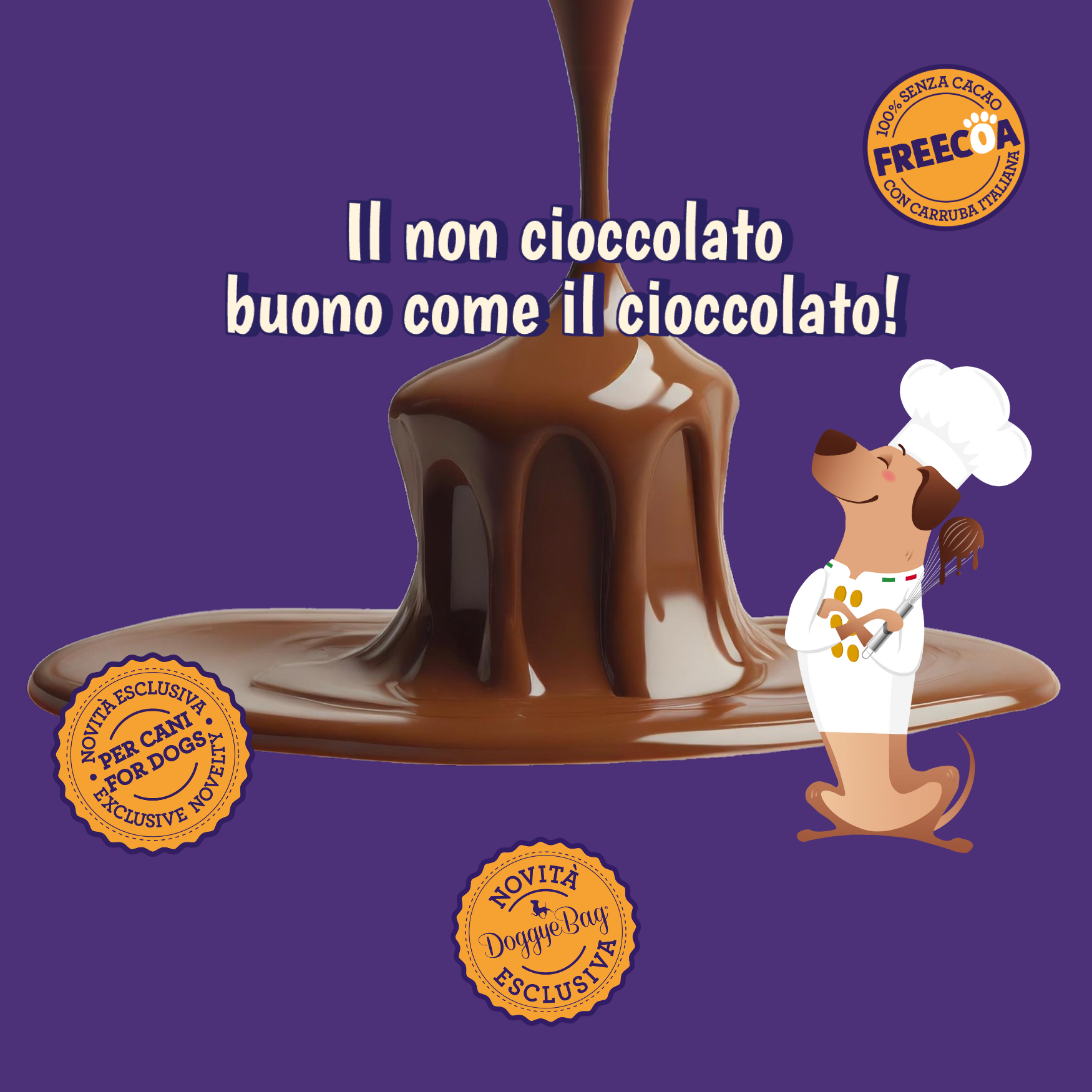 “Non contiene cacao, ma una miscela di polpa di carruba e oli vegetali che lo rendono un alimento del tutto sicuro per la salute del cane”